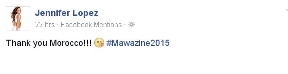 و شكرت جي . لو ، المغرب على حفاوة الاستقبال في تدوينة خاصة عبر صفحتها الرسمية بالفايسبوك حيث كتبت Thank you Morocco!!!