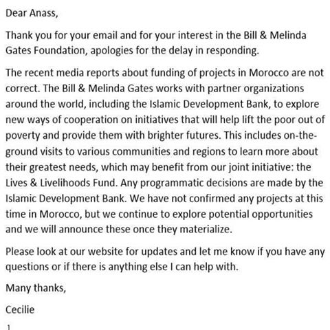الناطق الرسمي باسم المؤسسة نفى في رسالة إلكترونية جوابية على استفسار في هذا الشأن أن تكون المؤسسة قد وافقت على تمويل مشاريع بالمغرب مؤكدة أن هذا الأمر غير وارد في الفترة الحالية.