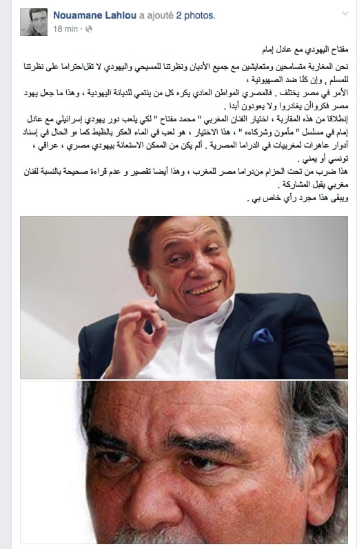 وجه الفنان المغربي نعمان الحلو انتقادات لاذعة لزميله الفنان و الممثل المغربي محمد مفتاح ، بعد قبول هذا الاخير لعب دور يهودي إسرائيلي إلى جانب المصري عادل إمام في مسلسل " مأمون وشركاءه " ، نعمان اعتبر ان هذا الاختيار ، " هو لعب في الماء العكر بالظبط كما هو الحال بالنسبة لإسناد أدوار عاهرات لمغربيات في الدراما المصرية " ، مستغربا كيف لم يكن ممكنا الاستعانة بيهودي مصري ، عراقي ، تونسي أو يمني .