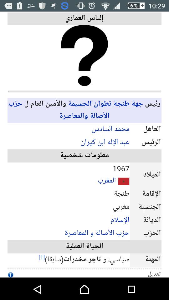 وصفت موسوعة ويكبيديا الشهيرة ، الياس العماري، الامين العام لحزب الاصالة و المعاصرة و رئيس جهة طنجة تطوان الحسيمة، بتاجر مخدرات سابق.