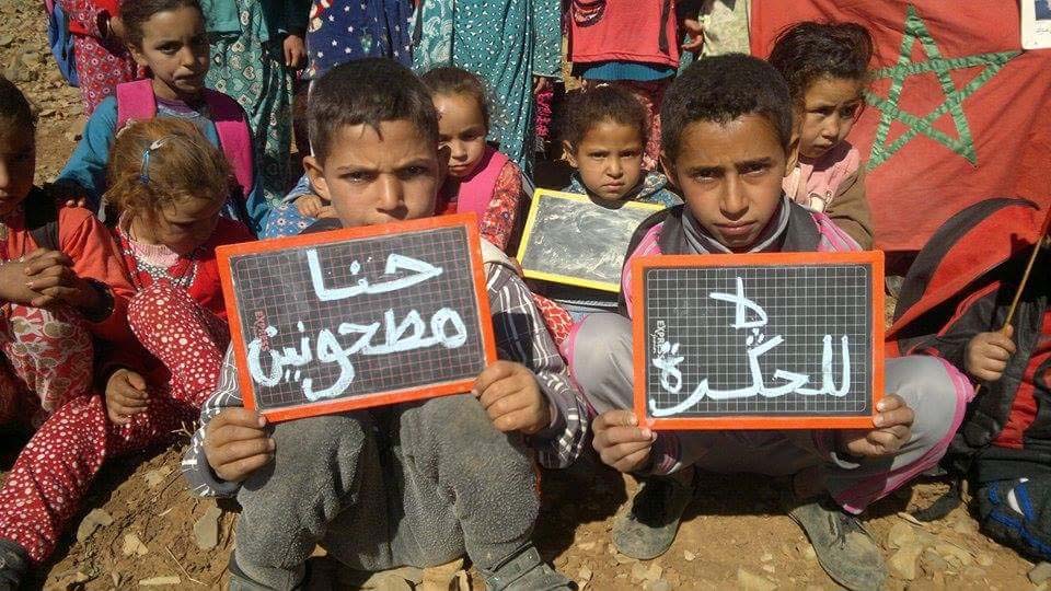الساكنة رفقة أطفالهم رفعوا شعارات تستنكر باقصائهم وتهميشهم وحكرتهم ، واستعملوا لوحات مدرسية "سبورات صغيرة" كتبوا فيها عبارات تعبر عن مطالبهم ، وهو ما تفاعل معه رواد مواقع التواصل الاجتماعي ، ولقيت وقفتهم السلمية المتحضرة تعاطفا كبيرا .