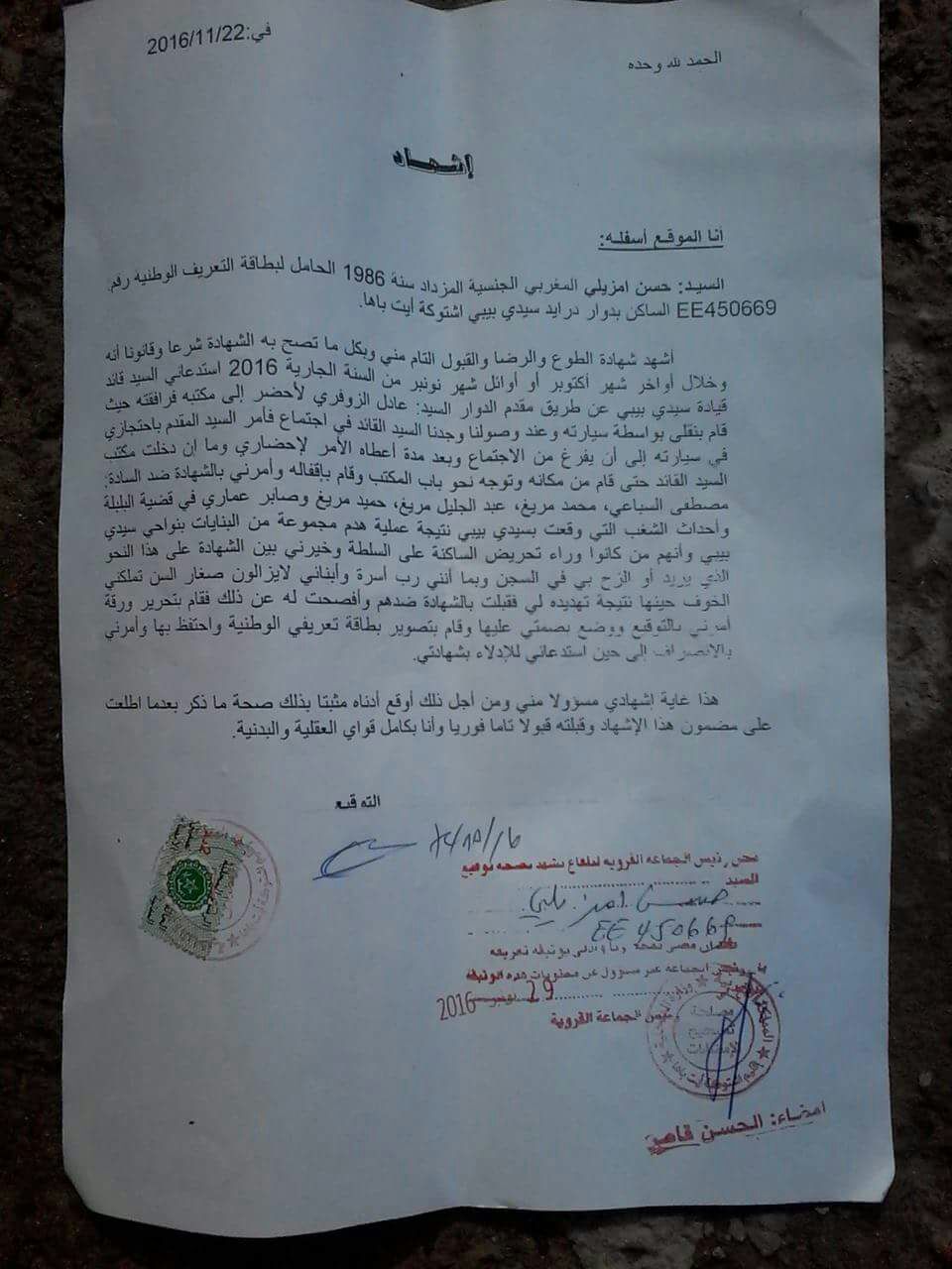تداولت هيئات حقوقية فيديو لمواطن من سيدي بيبي يقدم اعترافات خطيرة ضد القائد واتهمه بأنه أجبره بالقوة على الادلاء بشهادة زور في حق حقوقيين للزج بهم في السجن .