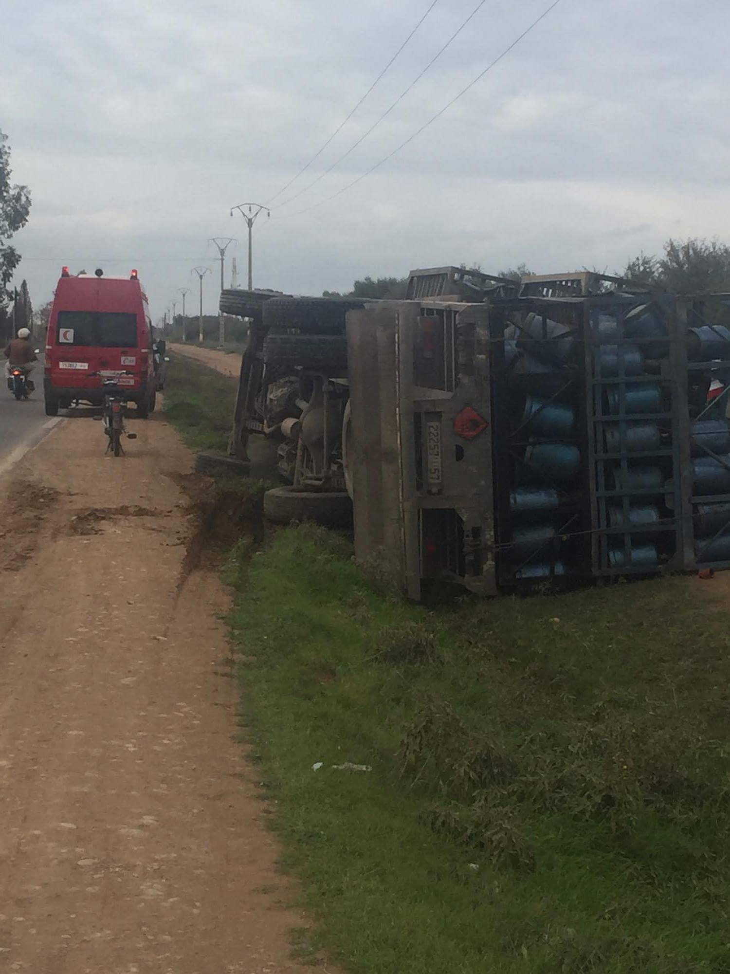 فلتنا من كارثة...انقلاب شاحنة محملة بقنينات الغاز ونقل السائق للمستعجلات (صور)
