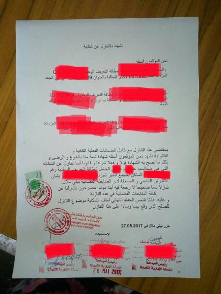 وحسب مصادر ل"أخبارنا" فقد تقدمت 4 طالبات بتنازل كتابي نتوفر على نسخة منه ، تتنازل فيه الطالبات المشتكيان عن متابعة الأستاذ المتهم بخصوص التحرش الجنسي الذي تعرضن له من طرفه، وقيل أن هناك ضغط من جهات بالكلية للتنازل حرصا على سمعة الكلية ، لكن لم يعرف ثمن هذا التنازل .