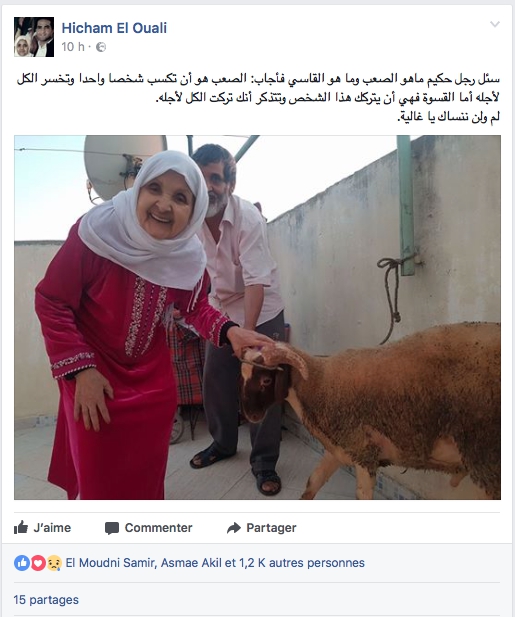 و ارتباطا بالموضوع ، فقد بادر الفنان هشام الوالي إلى اقتناء " كبش العيد " للفنانة فاطمة الركراكي ، حيث نشر صورة تختزل صدق ما تشعر به الفنانة الهرم ، بعد ان تنكر لها الزمان و هجرها الخلان و كأنها لم تكن من قبل.