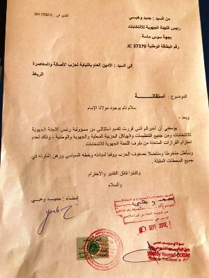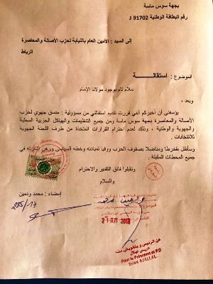 بالوثائق : قرار للعماري يدفع بقيادات حزب الأصالة والمعاصرة بجهة سوس ماسة إلى تقديم استقالة جماعية