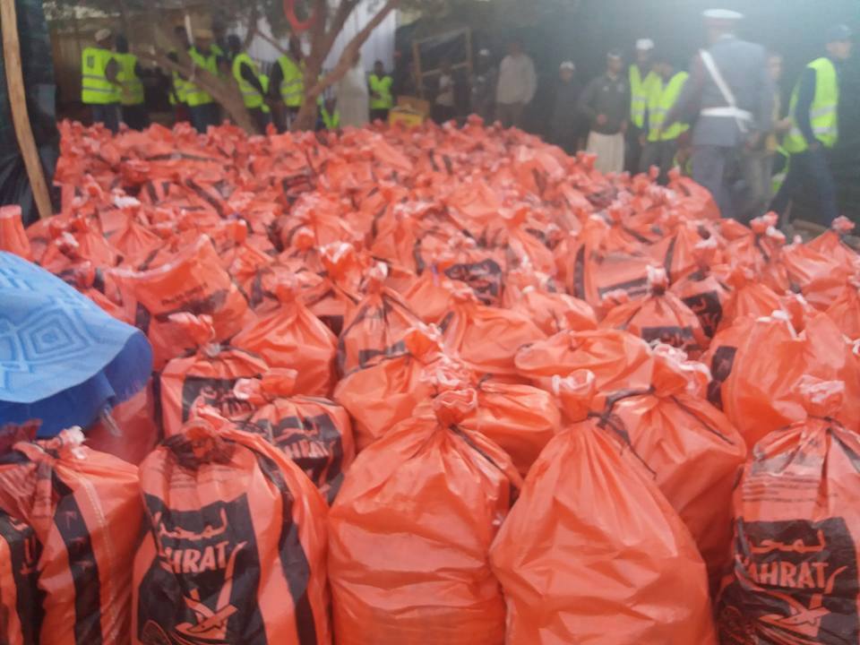 و تداول نشطاء على مواقع التواصل صورا لاكياس المساعدات الغذائية التي كانت سببا في وقوع حادث التدافع بين نحو 800 شخص غالبيتهم نساء، و التي تشمل أساسا الدقيق و الزيت و السكر .