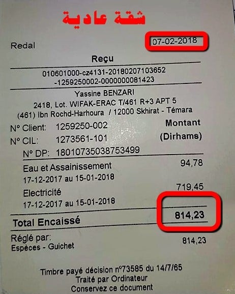 لا حديث في الآونة الأخيرة بين ساكنة اقليم الصخيرات - تمارة، إلا عن الارتفاع الصاروخي الذي تعرفه فواتير الماء والكهرباء، حيث وقفنا في موقع " أخبارنا " على بعض الحالات التي عبرت عن سخطها الشديد للطريقة التي تعتمدها شركة " ريضال " المكلفة بتدبير هذا القطاع، و التي استنزفت جيوبهم بشكل مبالغ فيه.