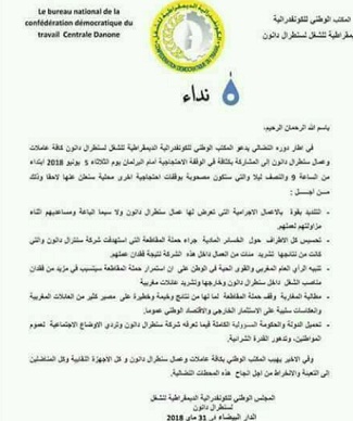 فقد أصدر المكتب الوطني للكونفدرالية الديموقراطية للشغل بسنطرال دانون نداء إلى كافة الشغيلة يدعوهم فيه إلى الاحتجاج أمام البرلمان مساء الثلاثاء القادم أمام البرلمان، والخروج في مسيرات محلية في عدد من المدن الأخرى.