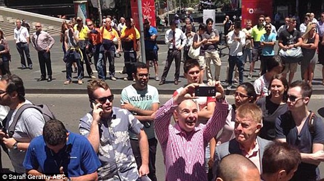 2- في الوقت الذي كانت أزمة الرهائن داخل لمقهى أسترالي على أشدها في وقت سابق من الشهر الجاري، وجد أحد المارة فرصة لالتقاط صورة سيلفي مستغلاً الضجة الإعلامية التي رافقت الحدث.