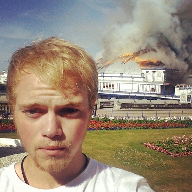 4- شاب آخر وجد فرصة مناسبة لالتقاط صورة سيلفي أمام مبنى يحترق في بلدة إيست بورن البريطانية.
