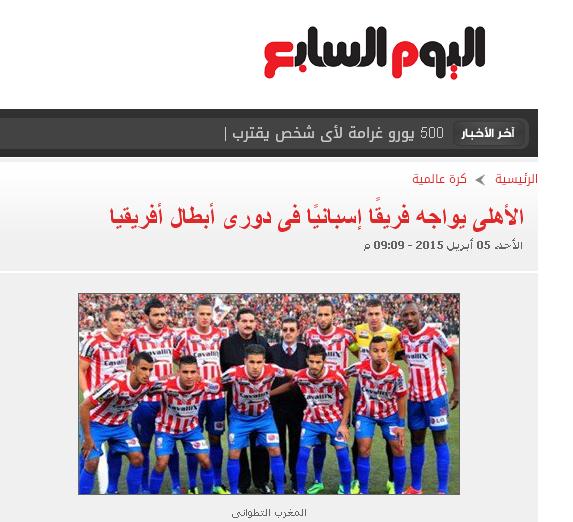 "اليوم السابع" : " الأهلي يواجه فريقًا إسبانيًا فى دوري أبطال أفريقيا ".
