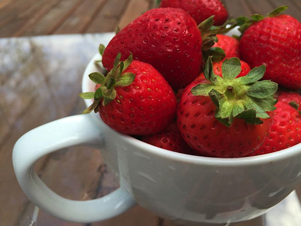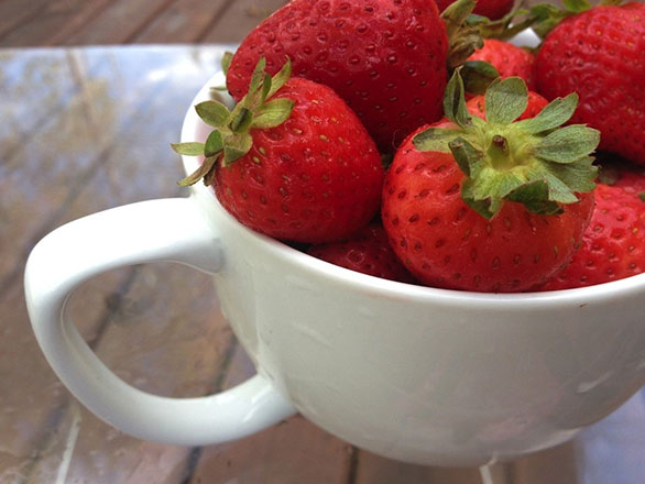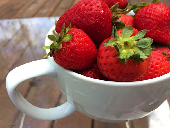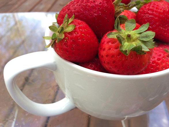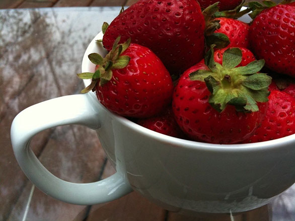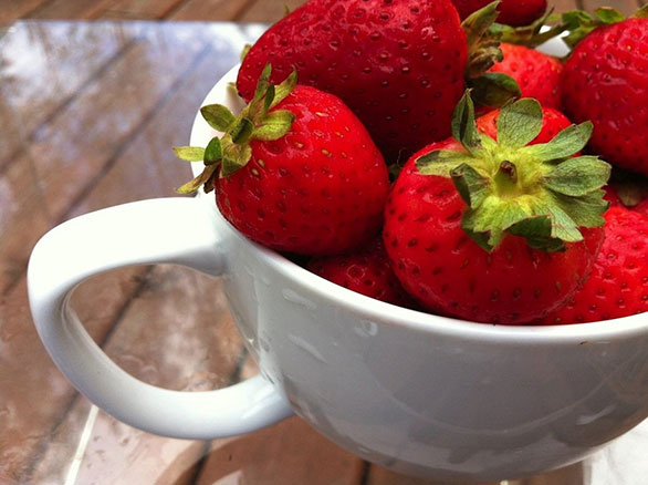 6- الضوء في هذه الصورة أوضح قليلاً فتبدو حبات الفراولة أجمل وأفضل بهاتف "آي فون 5".
