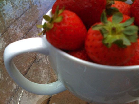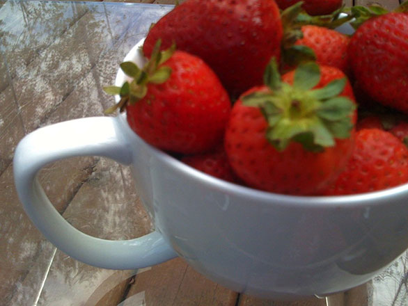 3- هذه الصورة ملتقطة بهاتف "آي فون 3 جي إس"، تبدو ألوان حبات الفراولة أكثر وضوحا من الصورتين السالفتين.