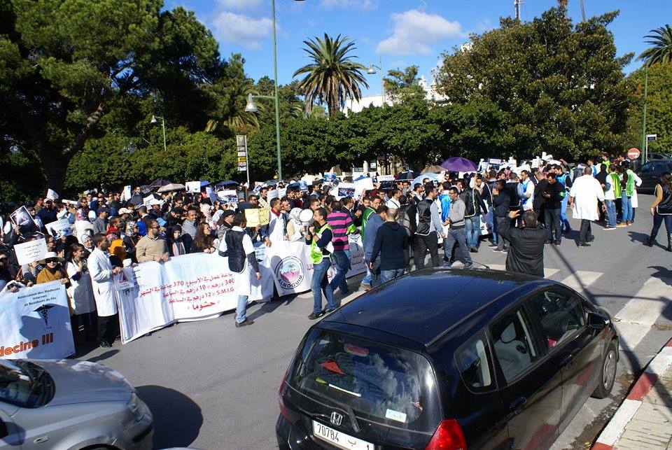 نظمت اللجنة الوطنية للأطباء الداخليين والمقيمين وقفة إحتجاجية أمس الإثنين 23 نونبر أمام وزارتي الفلاحة والصيد البحري والصحة، والواقعتين في ذات الشارع بالرباط.
