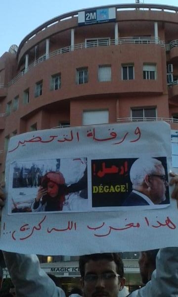 المحتجون رفعوا شعارات لاسقاط المرسومين ، وضد بن كيران ووزير الداخلية حصاد وبلمختار وزير التربية الوطنية .
