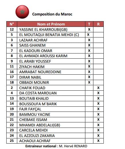 و حاول المدرب الوطني هيرفي رونار منح الفرصة لأكبر عدد من اللاعبين في هذه المواجهة الاعدادية، حيث أقدم على تغييرات كثيرة في الشوط الثاني مبقيا على 4 لاعبين فقط من التشكيل الرسمي ، و يتعلق الامر بالمدافعين درار و بنعطية و لزعر و متوسط الميدان الأحمدي .