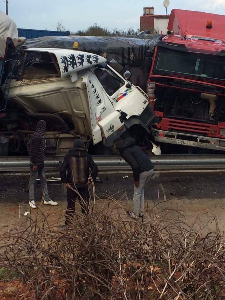شهود عيان أكدوا لـ " أخبارنا المغربية " أن الحادث نجم عن الإفراط في السرعة ،بالإضافة إلى التساقطات المطرية التي ساهمت في اصطدام شاحنة لنقل السلع بشاحنة أخرى لنقل المواد الصخرية ، حيث وجدت عناصر الوقاية المدنية صعوبة كبيرة في استخراج الضحايا من وسط الشاحنة بفعل قوة الاصطدام.