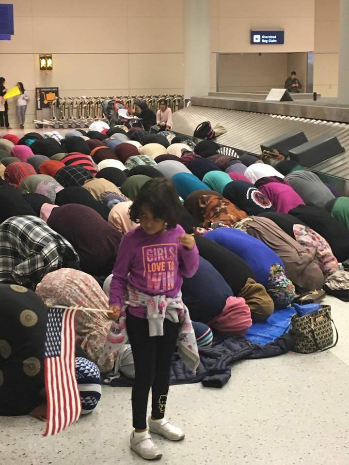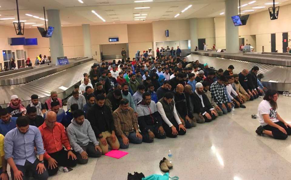 في موقف مريب فعلا ، تحولت صالات مطارات عدد من الولايات الأمريكية إلى مساجد تأوي المصلين ، بتأييد من آلاف المواطنين الأمريكيين ، الذين رفضوا قرار الرئيس الجديد دونالد ترامب القاضي بمنع رعايا 7 دول إسلامية من دخول تراب بلاده ، واصفين القرار بالعنصري الذي لا يستند للشرعية .