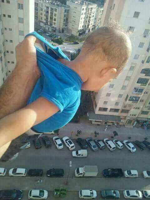 نشرت صفحات على موقع التواصل "فايسبوك" ، صورا لطفل حمله أحد الاشخاص بطريقة خطيرة من نافذة منزل متواجد على ما يبدو في أحد الطوابق العالية بعمارة تطل أحد الشوارع الكبرى.