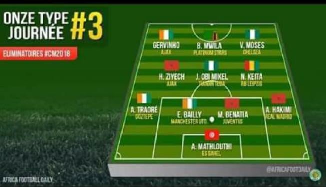 عرفت التشكيلة المثالية للجولة الثالثة من تصفيات كأس العالم روسيا 2018 الخاصة بالمنطقة الافريقية، و التي جرت نهاية الأسبوع الماضي، تواجد 3 لاعبين مغاربة.