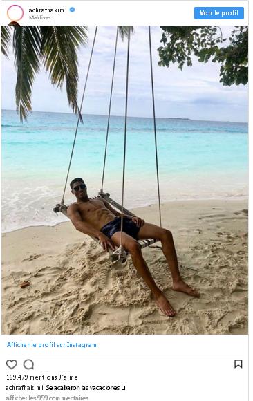 كشف مجلة "سيمانا" عن قضاء الدولي المغربي أشرف حكيمي ، جزء من عطلته الصيفية مؤخرا بجزر المالديف ، رفقة الممثلة الاسبانية المعروفة هبة أبوخريص بنسليمان المعروف فنيا ب "هبة أبوك".