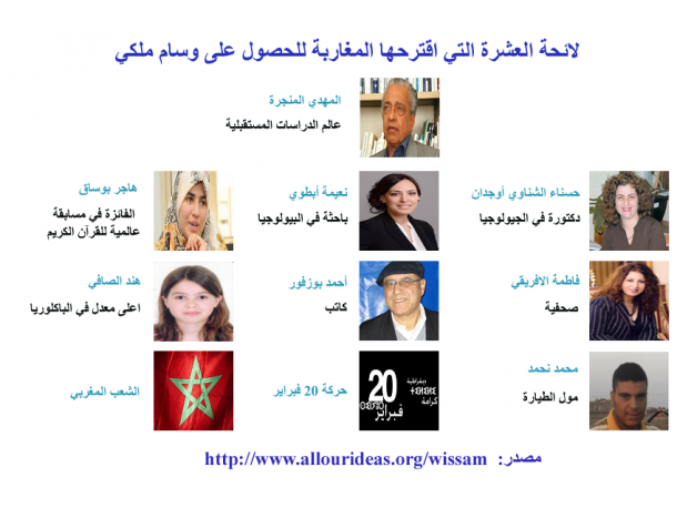 اثر ذلك قامت مجموعة من النشطاء المغاربة بطرح لائحة للتصويت على موقع allourideas.org/wissam/ ثم اقتراح عدد اخر من الاسماء البديلة وطلبت من زوار الموقع التصويت على الاشخاص التي تستحق اوسمة ملكية. و قد قام أصحاب المشروع باستثناء من حصلوا على وسام في الماضي أو مؤذونيات نقل من طرف الملك.
