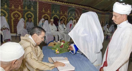 لا ينتهي موكب العرسان في حفل الزواج الجماعي بتافراوت، إلا أمام كاتبين محلفين، تكلفا بتوثيق الزواج، على أنغام رقصات “أحواش” أمام المئات من عائلات العرسان الجدد، والمدعوين من “تافراوت” والقرى المجاورة، وزوار مهرجان “تيفاوين”.