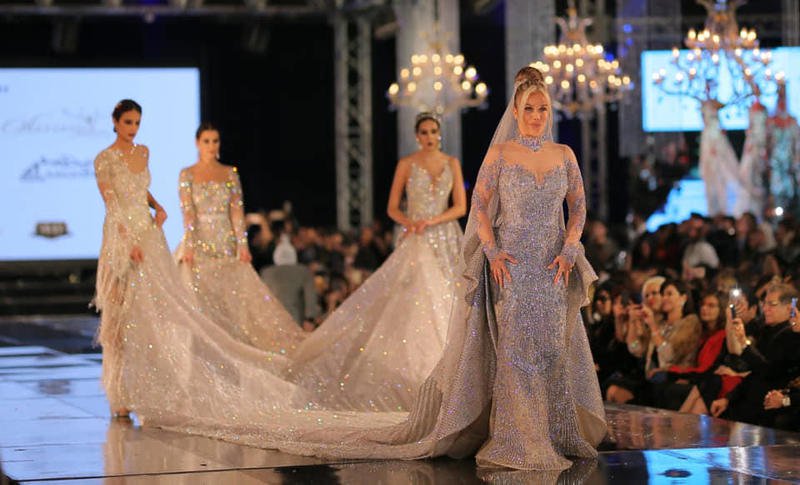 ونقلت وسائل إعلام محلية، بينها بوابة "أخبار اليوم" المملوكة للدولة، صورا للفنانة اللبنانية نيكول سابا بفستان زفاف قالت إنه "مرصع بالألماس من أعمال المصمم المصري الشهير، هاني البحيري، في ختام حفل عرض الأزياء"، الذي تم في وقت متأخر مساء الاثنين.
