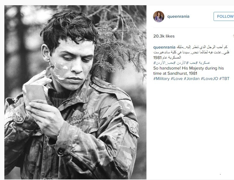 وعلقت الملكة على الصورة قائلة “كم أحب الرجل الذي تنظر إليه…مليك قلبي .. عشت فيه لطالما نبض. سيدنا في كلية ساندهيرست العسكرية عام 1981”.