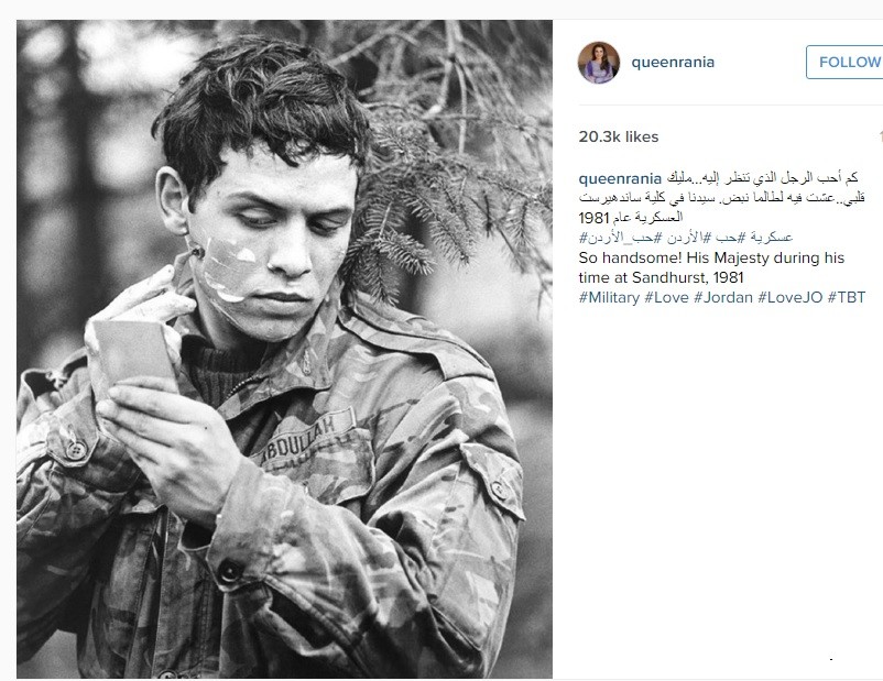 وعلقت الملكة على الصورة قائلة "كم أحب الرجل الذي تنظر إليه…مليك قلبي.. عشت فيه لطالما نبض. سيدنا في كلية ساندهيرست العسكرية عام 1981".
