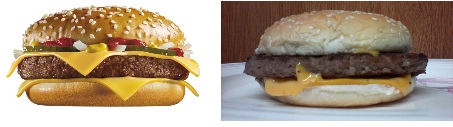 البصل والمخلل (الكبيس) والكاتشاب والخردل وحتى الخبز كلها نفس العناصر المستخدمة في الشطيرتين, لكن في حاله الشطيرة المجهزة للتصوير يتم وضع المكونات على الحافة و يتم حقن الكاتشاب بحقنة كما يتم تسخين حافة سكين و تقريبها من الجبن على الأطراف ليبدو أنه ذائب من سخونة اللحم!