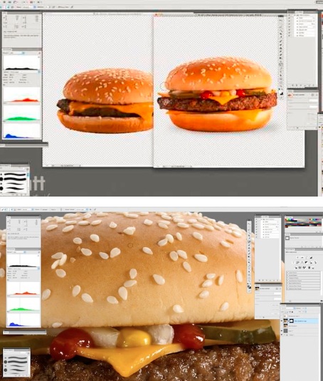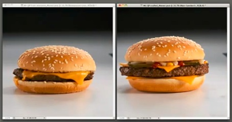 تؤكد مديرة التسويق في سلسلة مطاعم" ماكدونالدز" و التي ظهرت في الفيديو بعد أن قامت بشراء شطيرة من المطعم و قارنتها بالشطيرة التي تظهر صورها في الاعلانات أن المكونات نفسها في الشطائر الخاصة بالدعاية أو في المطعم،و لكن في المطعم يتم اعدادها بعدة دقائق أما في الدعاية فيستغرق اعدادها ساعات طويلة في استوديو خاص و بواسطة متخصصين في تزيين الطعام لتحضير الساندويش لجلسة التصوير