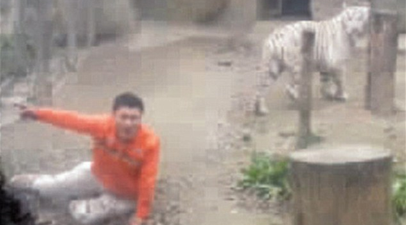 ونقلت وسائل إعلام صينية محلية عن شهود قولهم إن "الرجل تسلق القفص وقفز إلى داخله، لكن النمرين بقيا في مكانهما وبدا عليهما التوتر، إلى أن فرّت الأنثى بعيداً وبقي الذكر في مكانه. عندها اقترب الرجل منه محاولاً إثارته قبل أن يقوم بشد وجهه، وفي هذه اللحظة قام ذكر النمر بالهجوم عليه وعضّه مرات عدة، قبل أن يتمكن حراس الحديقة من السيطرة عليه بواسطة إبرة مخدّرة، وسحب الرجل الذي أصيب بجروح.