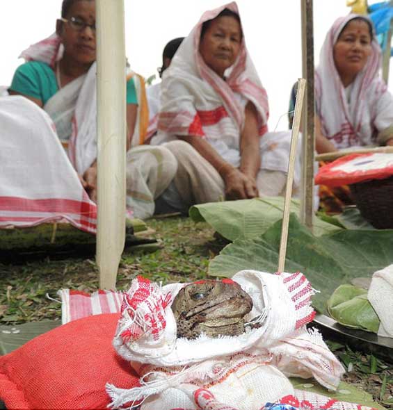 ويعتبر "تزويج الضفادع" في قرية ولاية اسام الهندية تقليداً شائعاً يحضره معظم نساء القرية لاستدعاء المطر، إذ تقوم بإرسال الضفادع بعد تزويجها على قوارب صغيرة مصنوعة من سعف النخيل، اعتقاداً بأنها ستعود حاملة معها المطر.