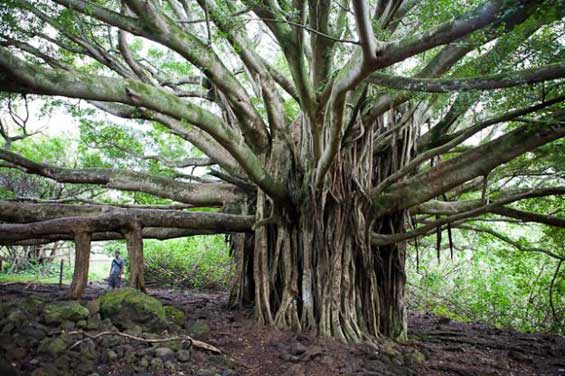 يمكن العثور على شجر بانيان في المناطق ذات المناخ الدافئ، وتعرف هذه الأنواع بدعاماتها القوية، وتنمو جذورها بشكل جذوع متراصة للأسفل، مما يعطي الشجرة مظهراً عريضاً جداً.