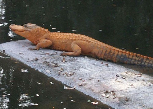 شاهدت امرأة سبعينية من سنوات في ولاية فلوريدا الأمريكية تمساحاً برتقالياً، ولم تكن الوحيدة التي وقعت عيناها عليه، ويعتقد أنه ولد بهذا اللون لتغير بيئي ما، وبصرف النظر عن السبب، يبقى تمساحاً جميلاً وفريداً من نوعه.