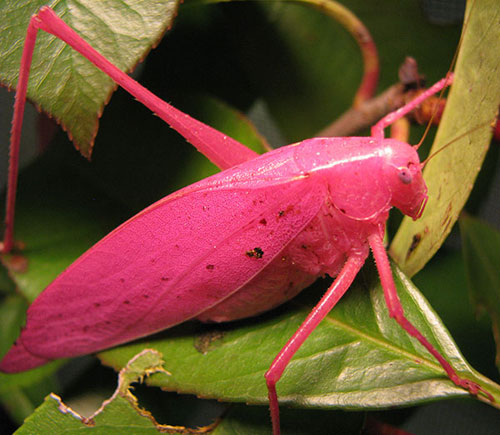 نعرف الجندب عادة من لونه الأخضر الفاتح، ويندر أن نراه أصفر أو برتقالي اللون، لكن الأندر بالفعل هو هذا الجندب الوردي.