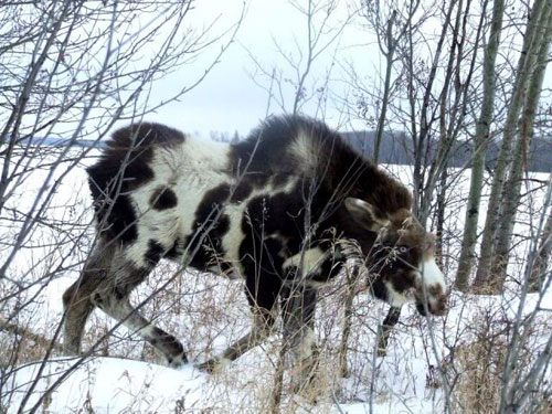 حيوان الموظ (غزال أمريكي ضخم)، كا نعرفه، بني اللون، وهذا الذي في الصور من أندر الأنواع، شوهد في ولاية ألبيرتا منذ عامين.