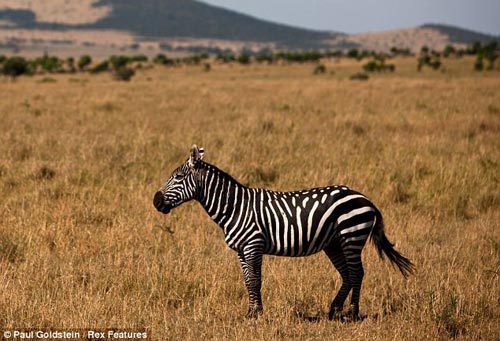التقط المصور الشهير بول غولدستين هذا الحمار الوحشي المميز في كينيا، وكما نلاحظ فخطوطه السوداء والبيضاء مختلفة عن العادة، مما يعطيه مظهراً غريباً.