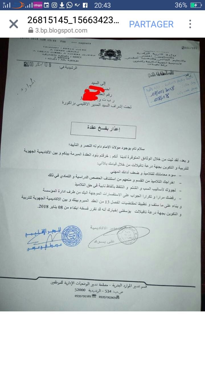 بالوثيقة... استمرار معاناة الأساتذة المتعاقدين بعد فصل أستاذ باحدى المؤسسات التعليمية بجهة درعة تافيلالت