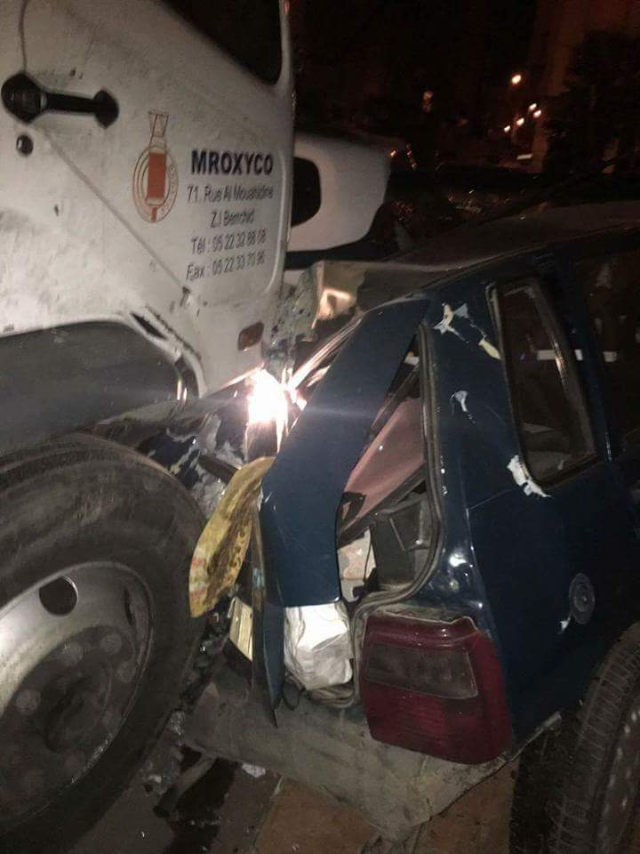 بالصور... شاحنة مجنونة تصدم مجموعة من السيارات ببرشيد
