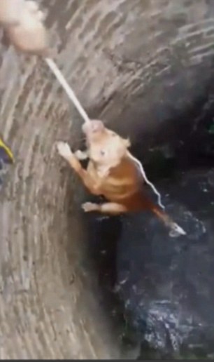 وأضافت” الحيوان الأليف الرملي اللون كان في مهمة إنقاذ دراماتيكية لكنه تعرض للغرق أسفل بئر عميق، ثم تمكن بذكائه من التقاط الحبل مرارا وتكراراوسار على حائط الطوب، بعدما واجه عدة انزلاقات وسقوطا من قمة البئر.