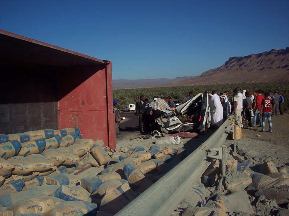 شهدت صباح اليوم السبت الطريق الرابطة بين مدينة زاكورة و جماعة أكدز، حادثة سير خطيرة و ذلك بعد اصدام شاحنة تحمل الاسمنت مع سيارة تابعة لنيابة زاكورة و التي كانت تقل ثلاثة أطر تربوية كانوا في طريقهم لإحدى مؤسسات الإقليم لإجراء الكفاءة التربوية.