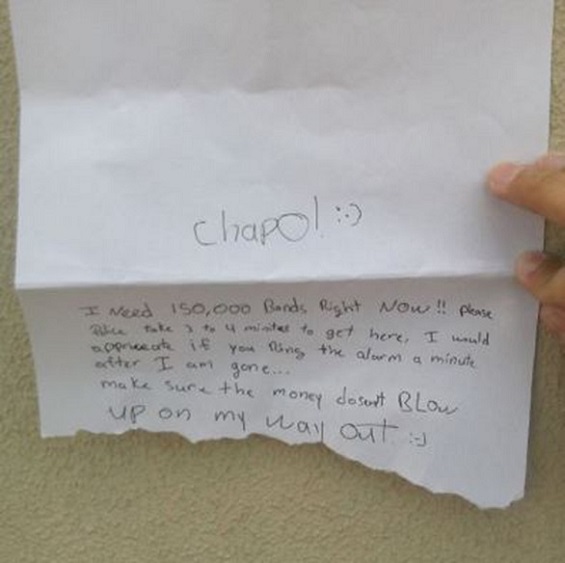 وختم الشاب رسالته التي تضمنت عبارات شكر وامتنان، بجملة ساخرة ووجه تعبيري مبتسم قائلاً: "تأكدي من أن الأموال التي بحوزتي لن تنفجر أثناء خروجي من المصرف".