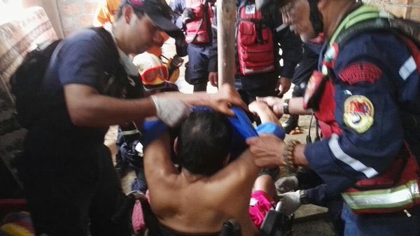 وتناهى إلى أسماع أفراد الوحدة الفنزويلية أصوات صادرة من مبنى متهدم جزئياً، فتمت الاستعانة بتقنيات خاصة لأجل هذا النوع من الحالات، وجرى إنقاذ المسن الذي نقل إلى المستشفى.