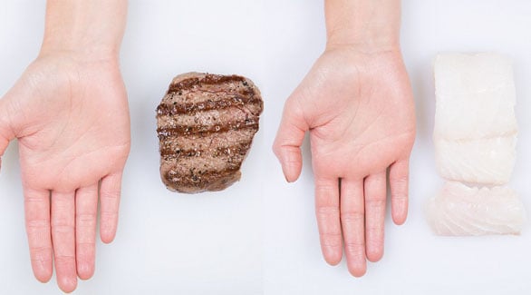 ويوصي خبير التغذية سيان بورتر من الجمعية البريطانية للتغذية باستخدام "كف اليد" كمعيار لكمية اللحوم والدجاج والأسماك التي يجب أن تؤكل، فلا يجب أن يزيد حجم قطعة البروتين عن كف اليد.