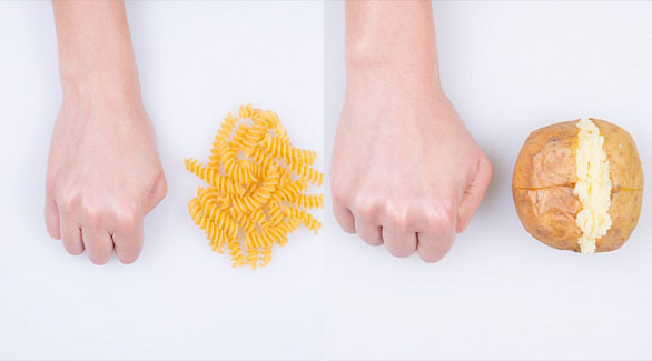 أما بالنسبة للكربوهيدرات، فيجب على الشخص استخدام "قبضة اليد" في احتساب كمية الكربوهيدرات التي يجب أن يتناولها في الوجبة مثل البطاطس والخبز والأرز والمعكرونة وغيرها.