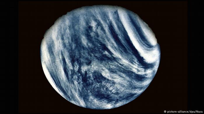 الزهرة ثاني كواكب المجموعة الشمسية قرباً للشمس. المسبار "مارينر 10" قام بإرسال هذه الصورة سنة 1974 أيضاً، وقامت إدارة الطيران والفضاء الأمريكية (ناسا) بزيادة عمق الألوان في الصورة لإظهار السحب التي تغطي الغلاف الجوي للكوكب، والتي تتكون من غاز ثاني أكسيد الكربون. وتعرض المسبار لعدة مشاكل تقنية في طريقه لاستكشاف الزهرة خسر بسببها الكثير من الطاقة.
