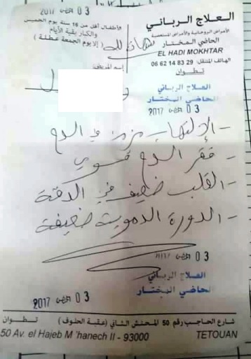 تناقلت عدد من الصفحات الفايسبوكية وصفة طبية موقعة من طرف طبيب يملك "عيادة ربانية" متواجدة بمدينة تطوان.